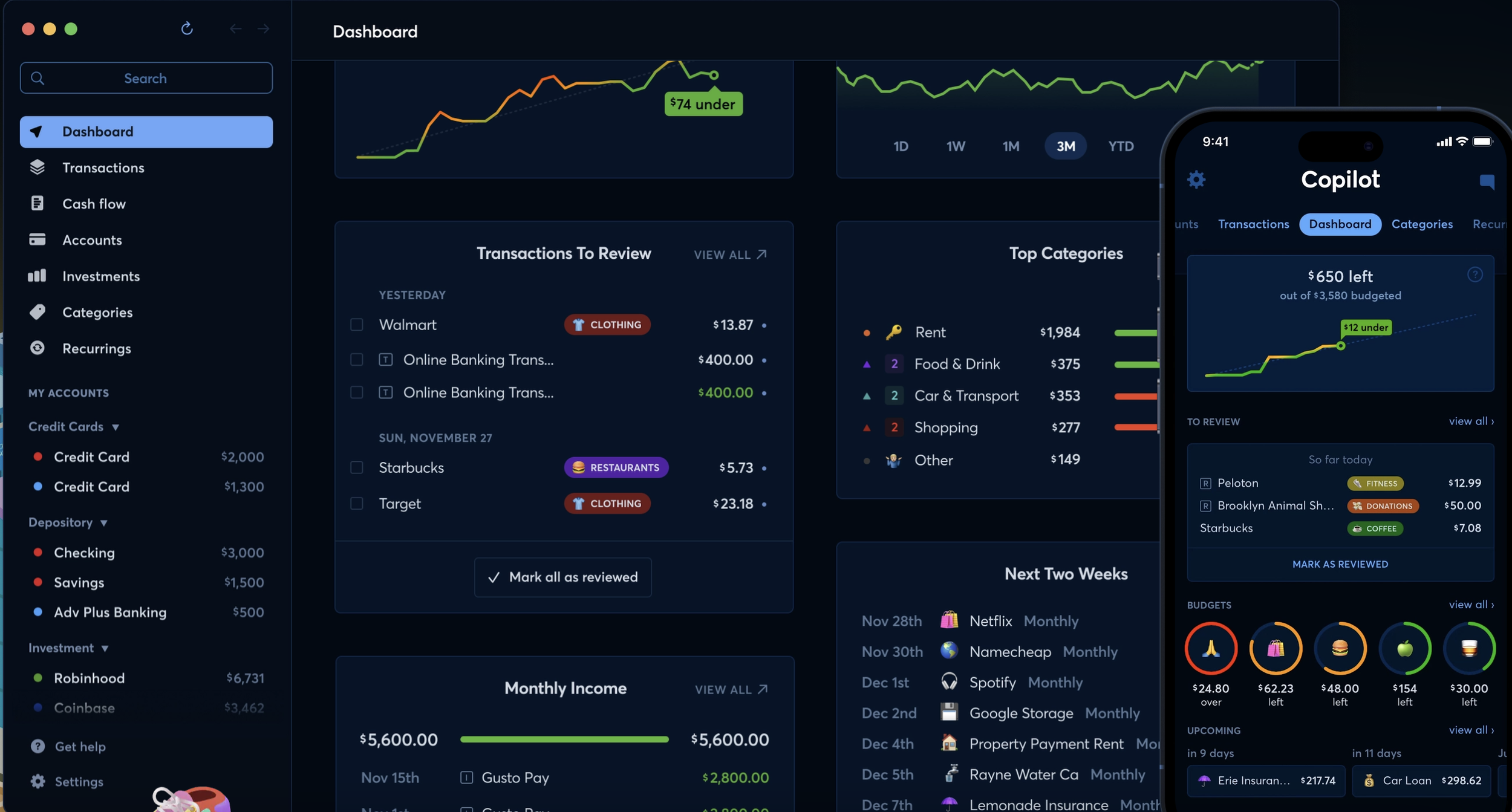 Copilot is a premium budgeting app for iOS and Mac that connects to your bank accounts, credit cards, and investments to give you a clean, customizable overview of your finances. Think of it as a personal finance assistant minus the judgment and weird graphs you never asked for.